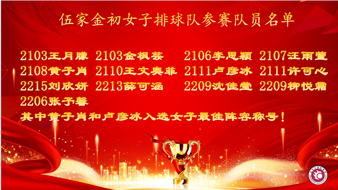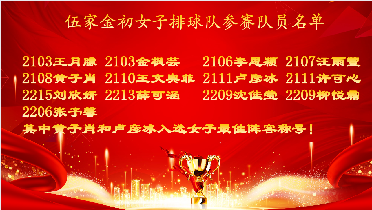 5月28日,伍家金初女子排球队在2023年伍家岗区第四届中学生排球比赛中斩获女子甲组冠军!
