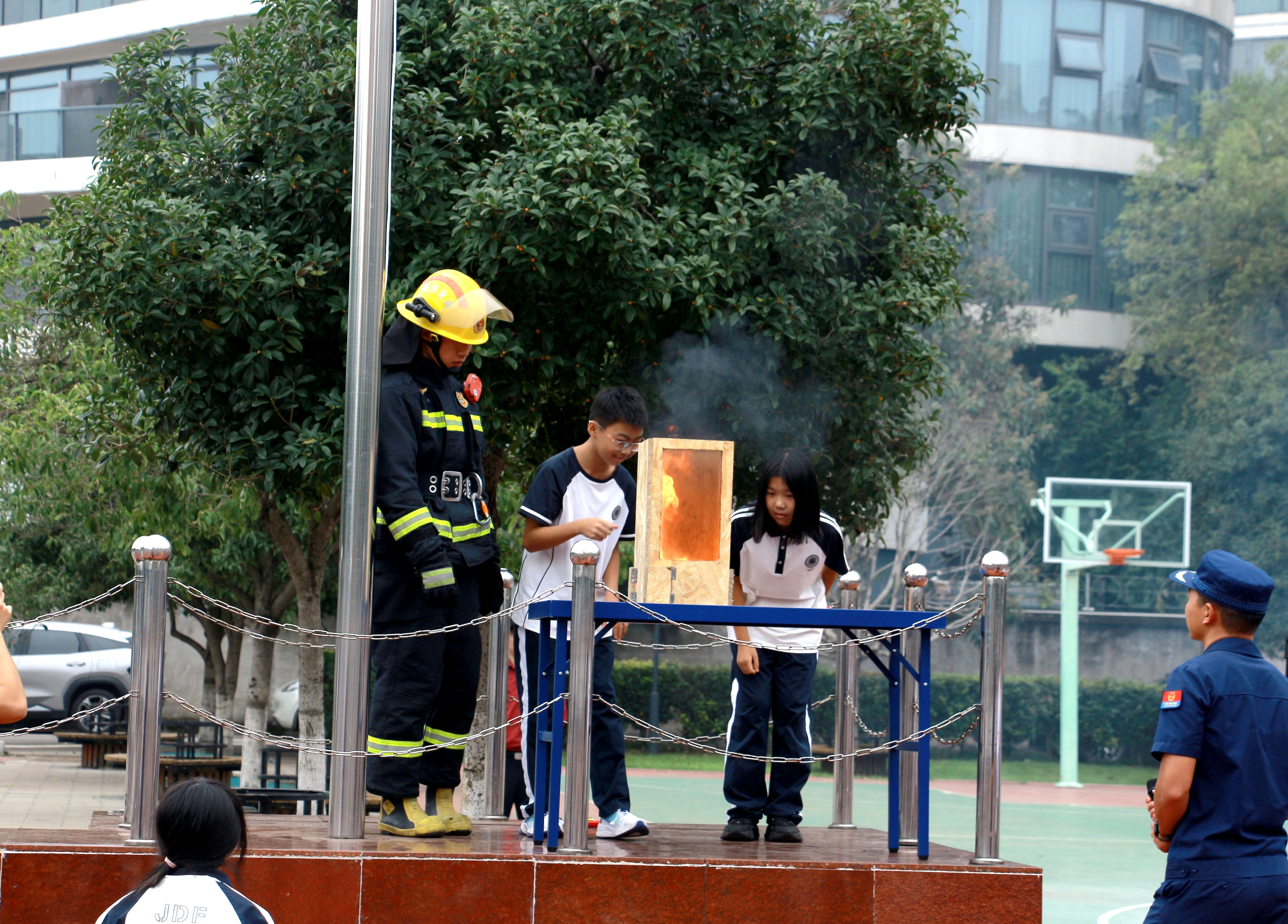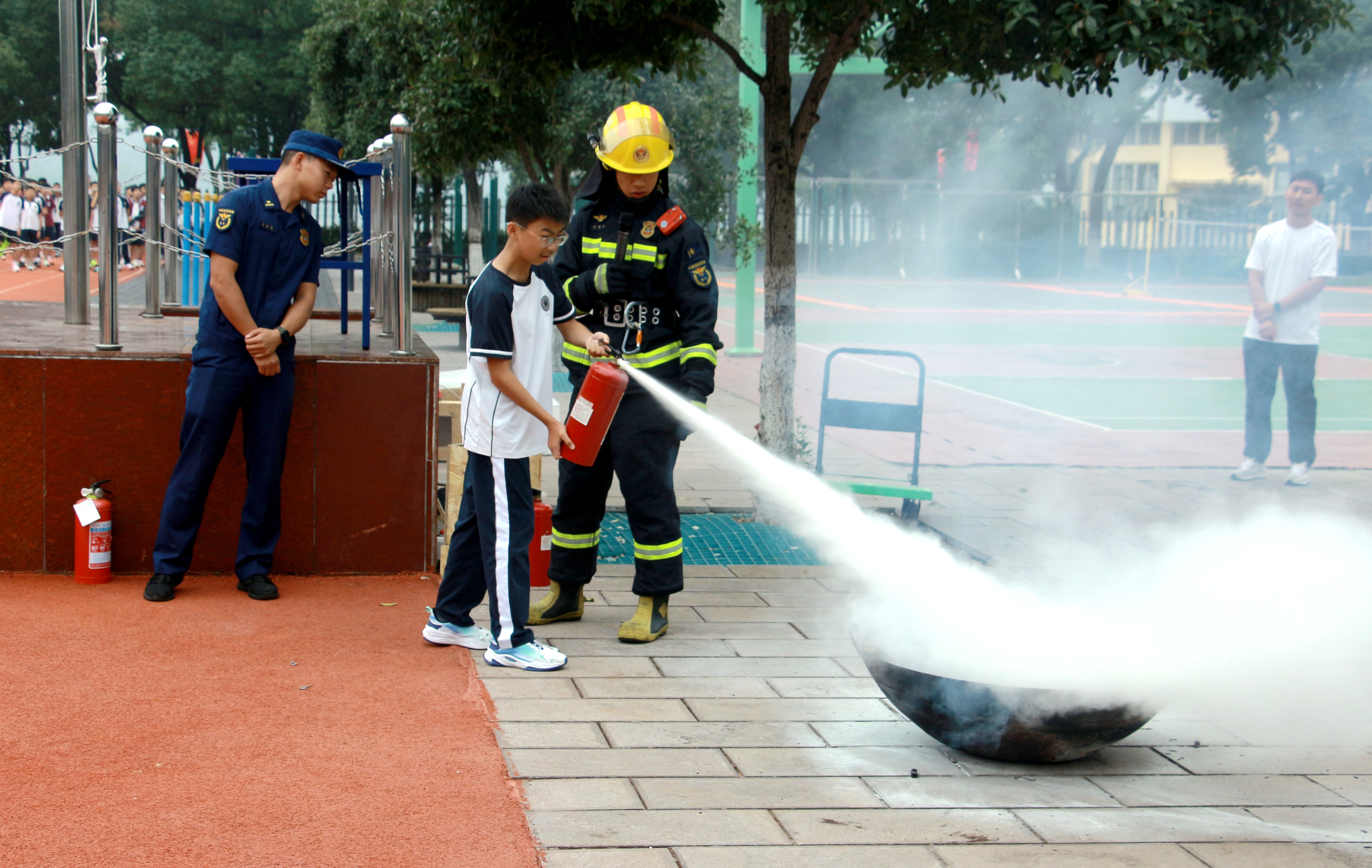 10月10日上午,伍家金初联合沈家店消防支队,开展了2025年秋季学期消防安全疏散演练活动。