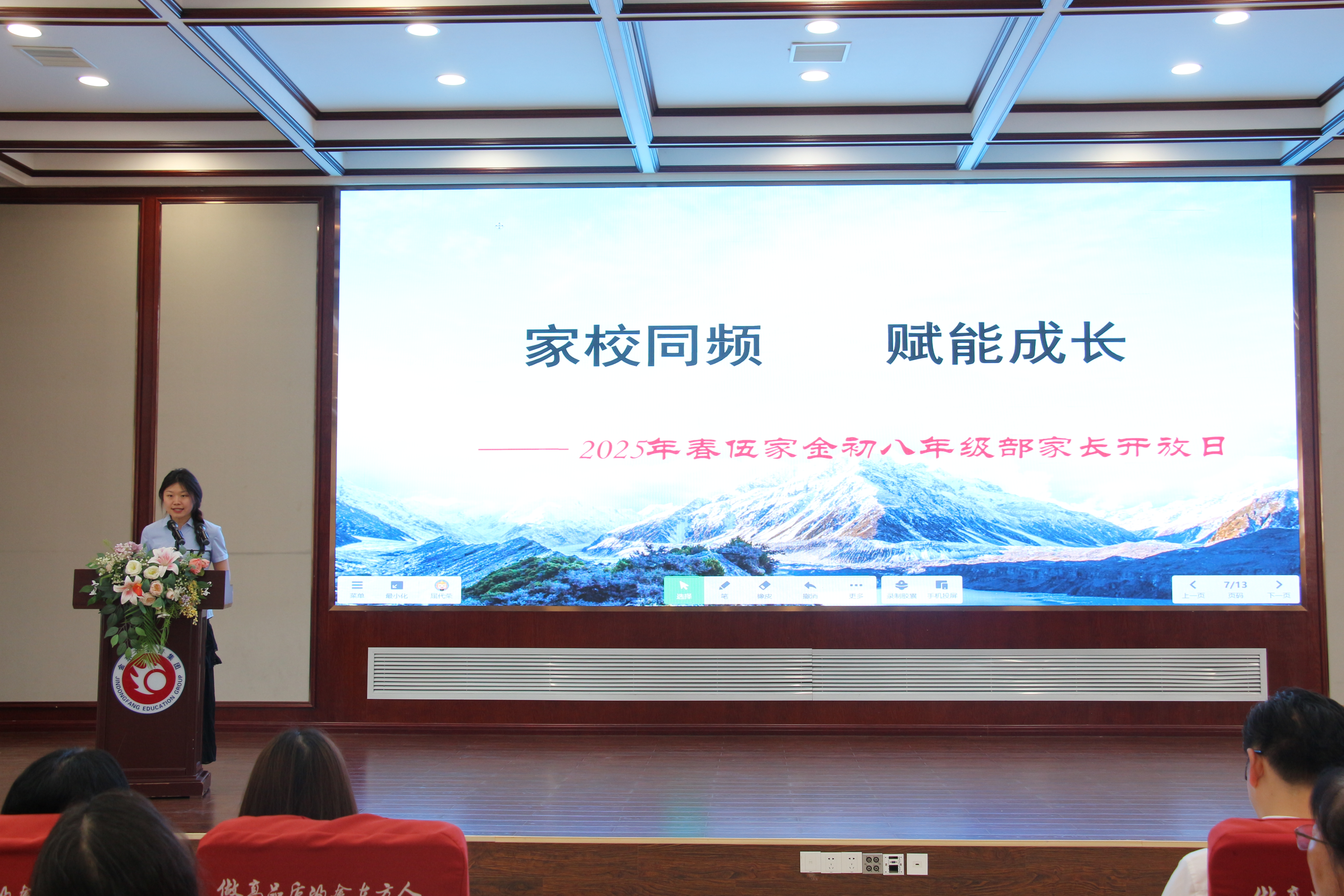 活动伊始,七、八、九三个年级部分时段开展活动。家长课堂上,各年级教师聚焦学段特点,围绕学习方法、心理健康等主题,分享教育经验,助力家长科学育儿。班级公开课中,老师们巧妙设计教学环节,充分调动学生积极性,让家长直观感受课堂氛围与教学成果。班会课则由学生们展示才艺、分享学习生活感悟,展现青春风采。随后,家长们走进各学科办公室,与老师们就学生的学习情况、在校表现、成长困惑等问题展开深入探讨,共商教育策略。