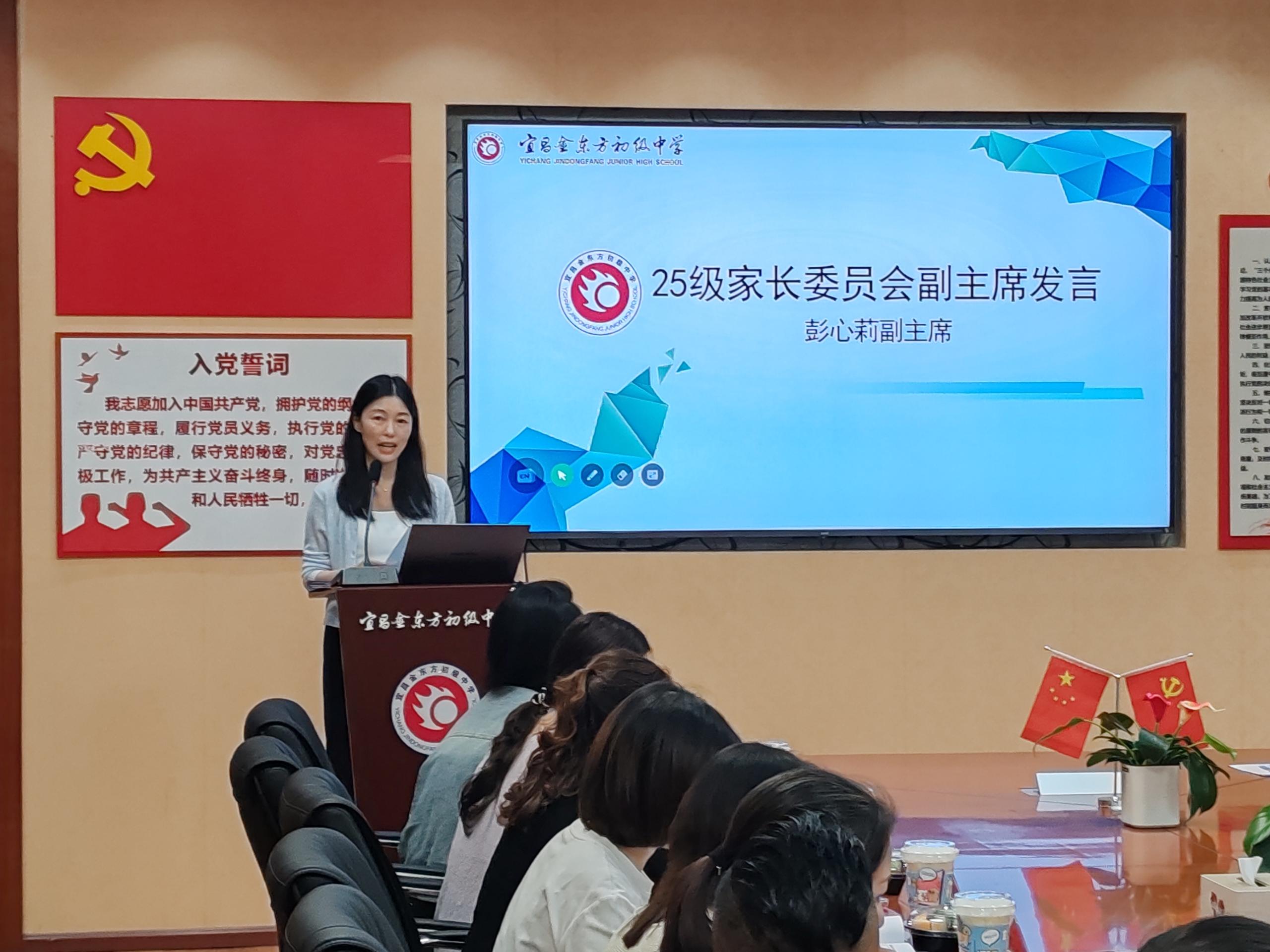 学生发展处主任陶李华对《学校家委会工作管理制度》进行了详细解读。德育副校长朱善耕组织全体委员学习《金东方教育集团“十不准”》,进一步明确家校共育的行为规范。25级家长委员会副主席彭心莉作为代表发言,系统总结第七届家委会工作成果,并对未来家校协作提出展望。