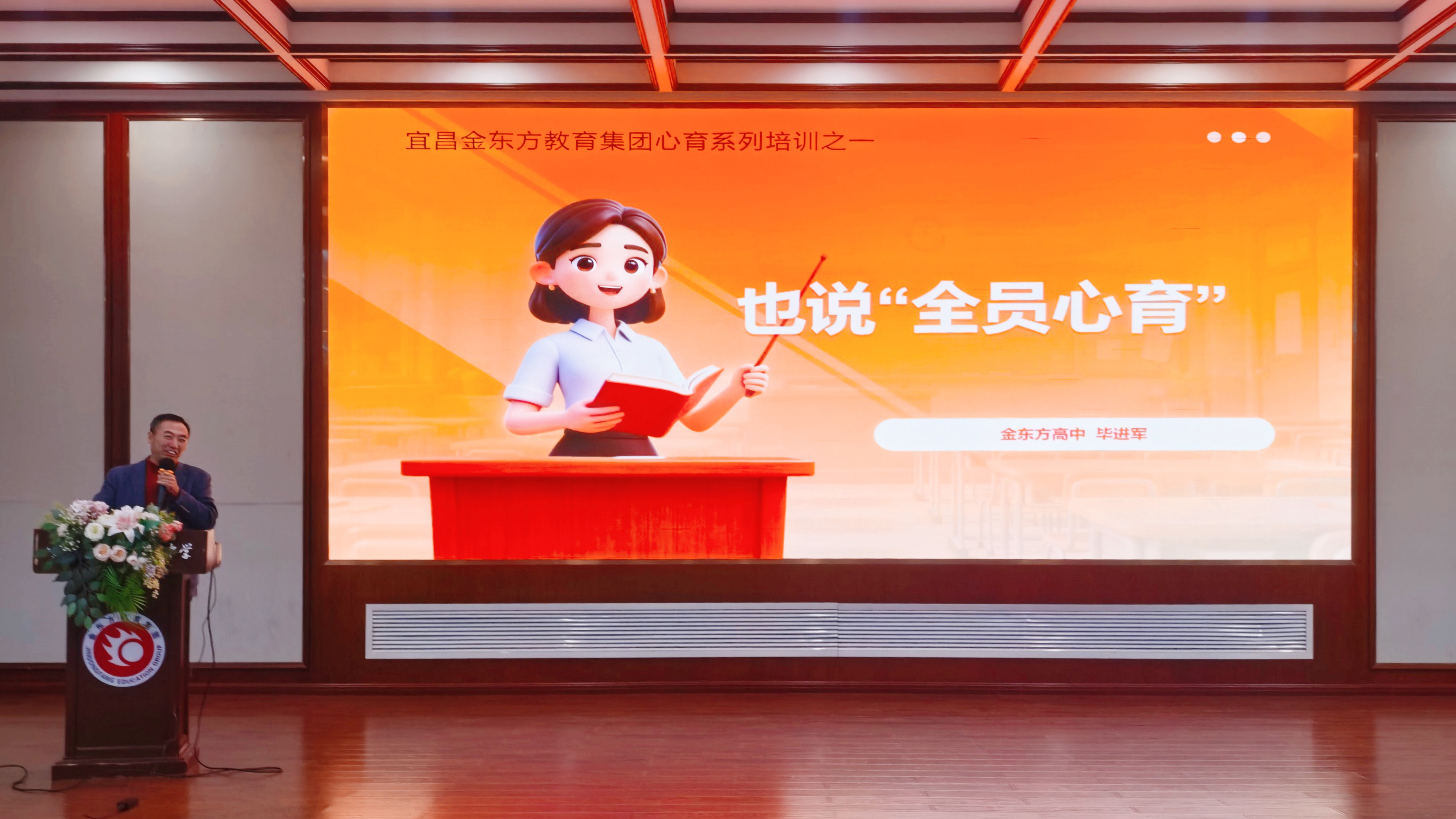 会议伊始,金高心理健康教师毕进军以“爱己”到“爱人”为主线,为全体教职工带来“全员心育”专题培训。随后,复读中心吴晶晶、西陵金初陈文静、伍家金初贾文俊、西陵金初邓芙蓉等后勤服务一线的员工代表依次登台,用朴实的语言讲述了日常工作中的平凡坚守与责任担当。