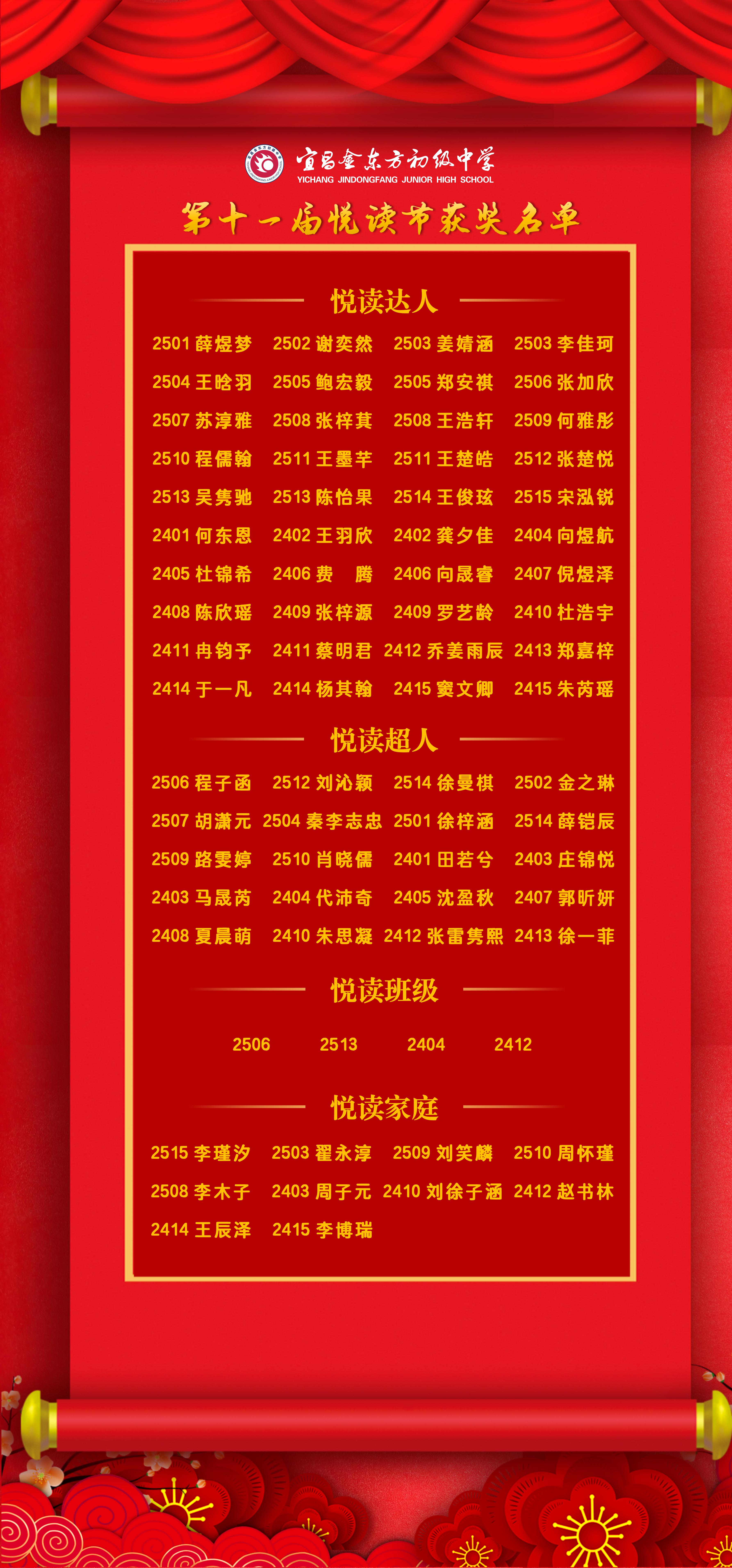 为深入推进校园书香文化建设,落实“师生共读、家校共育”理念,构建“学校—班级—家庭”三位一体阅读体系,伍家金初于3-4月举办了“书香润心田 经典筑芳华”第十一届“悦读节”。