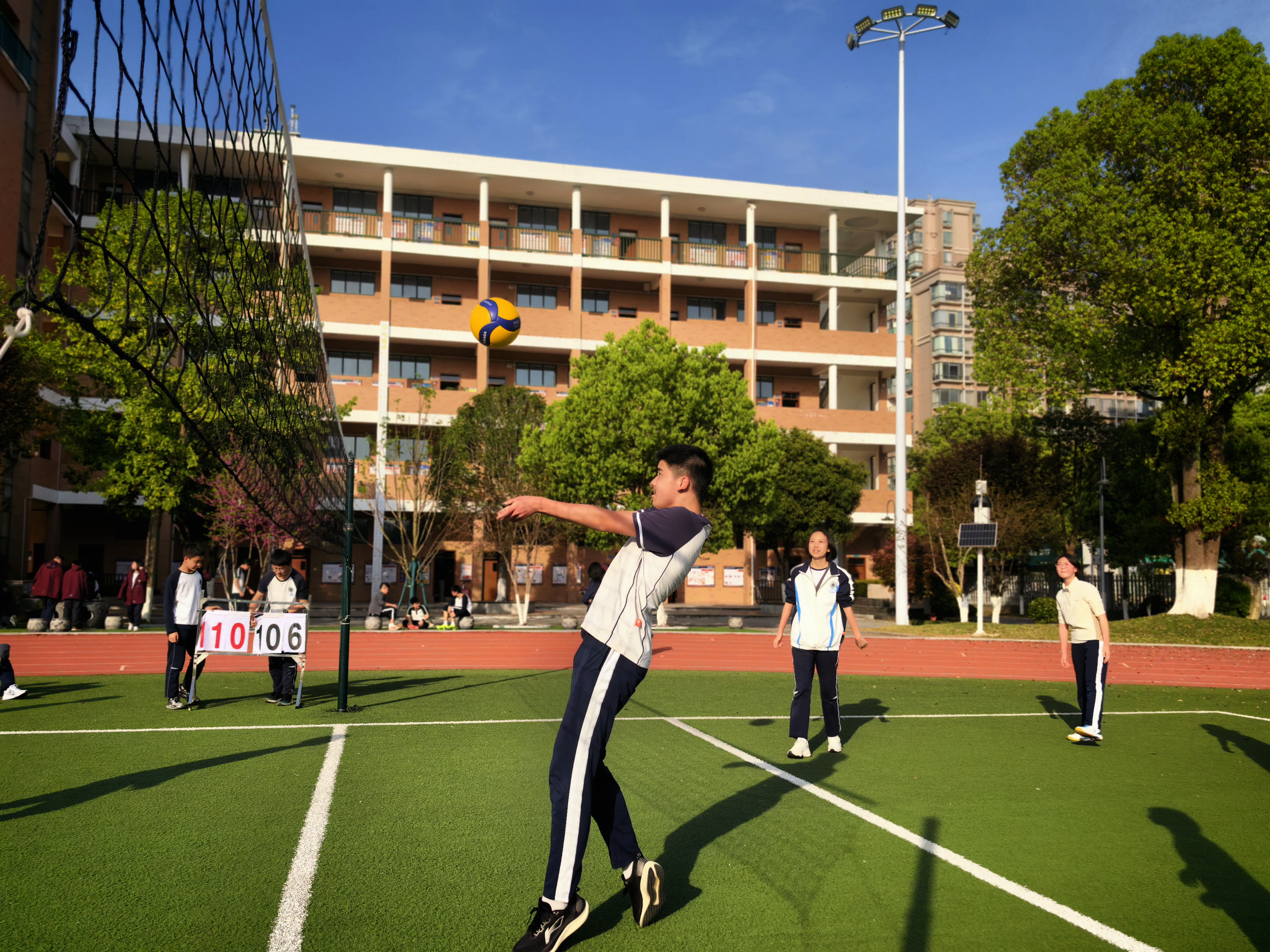 本届运动会不仅是一场竞技,更是对“健康第一”教育理念的生动践行。篮球、足球、排球、乒乓球、羽毛球五大项目悉数登场,“五球争辉”成为校园最燃风景。赛场上,运动员们奋力拼搏、默契配合,用汗水与激情诠释了青春热血与体育精神;赛场下,欢呼与掌声此起彼伏,充分彰显了运动带来的身心愉悦感与团队凝聚力的升华。